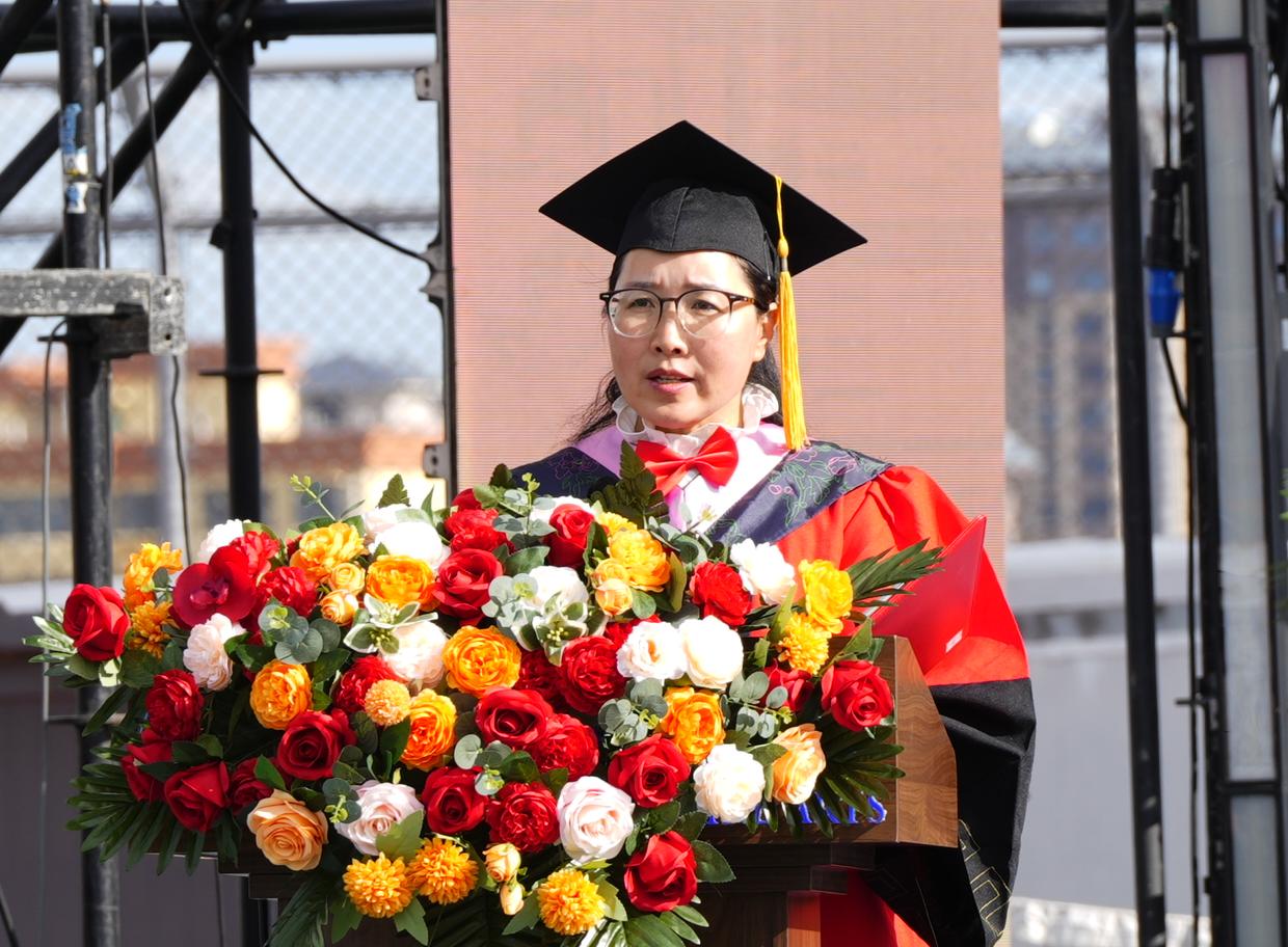 校长甄忠义代表学校向毕业学子送上诚挚祝福。他希望大家面对未知挑战时,要相信国家,在新征程里寻找生命的坐标;相信时代,在变局中抓住成长的机遇;相信自己,在奋进中积蓄向上的力量,努力成为时代的掌灯人。面对离别,他强调,母校永远是大家的港湾,无论未来走向何方,母校这盏永不熄灭的灯塔,将始终关注、祝福并支持每一位学子,做他们最坚实的后盾。
