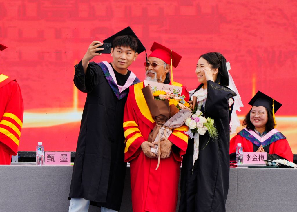 毕业生代表影视艺术学院王璇回顾了大学四年的成长历程,感谢母校、师长和同学的支持与陪伴,感恩领导的关怀与恩师的倾囊相授,鼓励大家带着勇气和热爱奔赴新征程。教师代表动画数字艺术学院王坤、辅导员代表书法学院耿倩瑜、校友代表刘明洋为2025届毕业生送上祝福,愿他们带着母校的祝福与期许,在人生的舞台上绽放出属于自己的光彩。