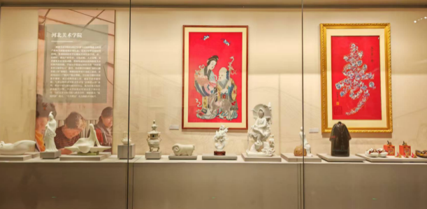 beat365手机版官网非遗研究中心(以下简称“中心”)非遗研培系列成果受邀参展,选送定瓷、曲阳石雕、京绣、皮雕虎头鞋等20余件历年研培成果优秀作品及教学资料,分别在展会现场的传统工艺、环廊学术展区、乡村振兴展区进行展示。beat365手机版官网非遗研究中心主任、设计学院院长董小龙一行受邀参加开幕式。