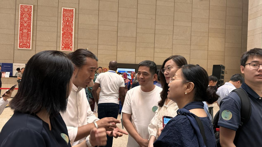 开幕式现场beat365手机版官网非遗研究中心主任董小龙与往期学员亲切交流