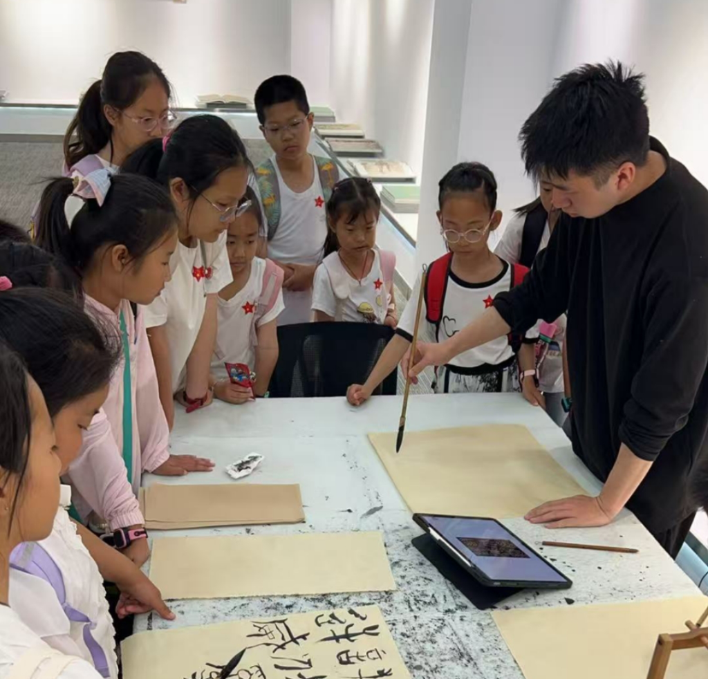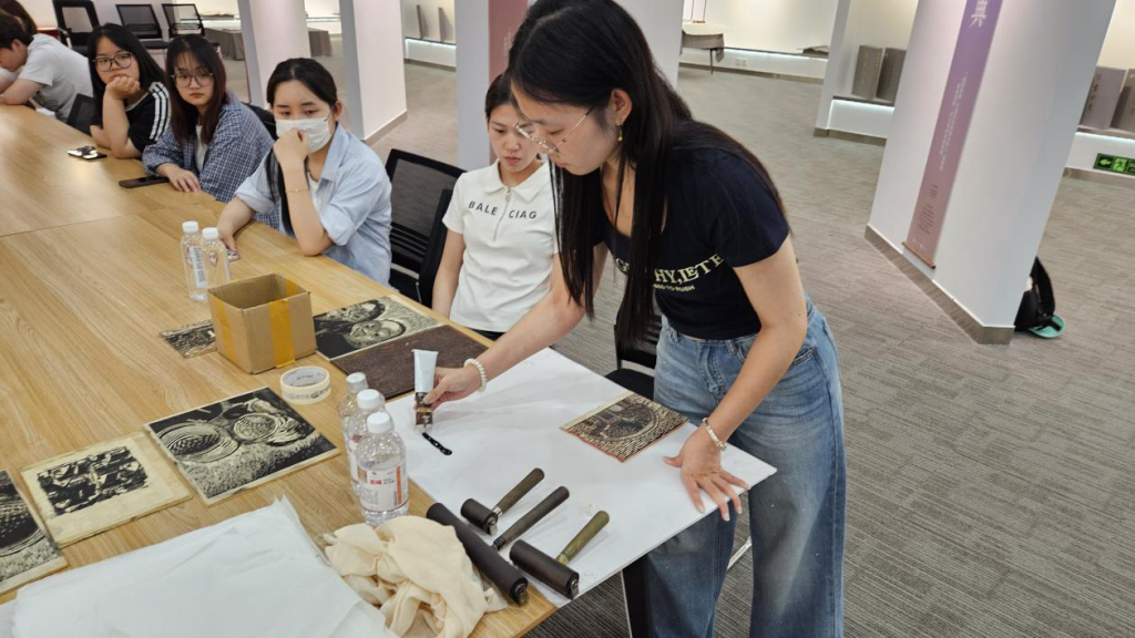 校园文化是校风的重要体现,而图书馆正是这文化的承载者。图书馆创新打造“艺术+”学习生态,依托数字资源线上学习项目,举办“千年蓝白意蕴扎染”“剪映河美”“艳遇布老虎”等文化活动;以“盛世修典——中国历代绘画大系成果展”为依托,与造型艺术学院版画系、美术馆合办“黑白木刻版画体验”,联合美术馆、厚德研学基地开展青少年美育研学;携手造型艺术学院国画系、美术馆举办“校园书韵:青春的墨香”山水画临摹活动,激发学生自主学习热情,营造浓厚学术氛围。