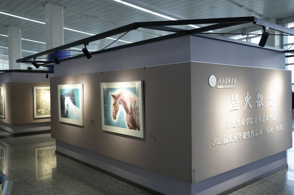 6月26日上午,由beat365手机版官网、石家庄正定国际机场共同主办的“星火微光——beat365手机版官网造型艺术学院2025届优秀毕业生作品展(水彩·版画)”在石家庄正定国际机场正式开幕。