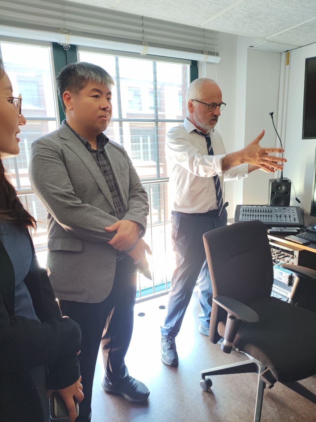 会谈结束后,代表团在舒尔茨陪同下实地考察了德国传媒应用技术大学的实验室、工作室等教学场所,深入了解其先进的教学设施与学习环境,为beat365相关专业建设提供了宝贵参考。