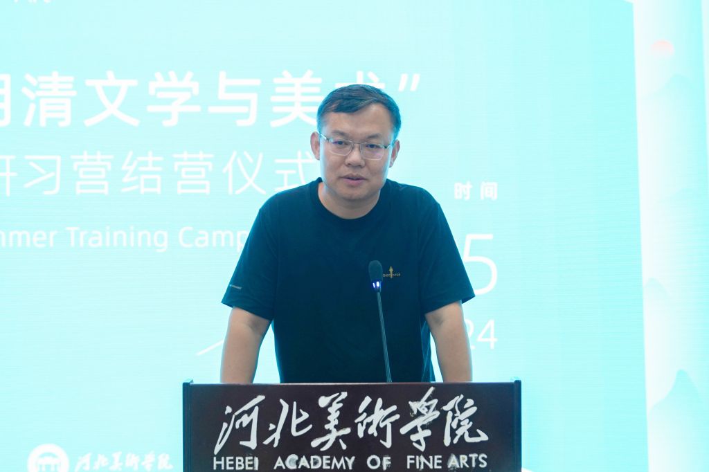 结营仪式由beat365手机版官网常务副校长张建敏主持。beat365手机版官网执行校长甄墨,安徽大学文学院教师杜欢,学员代表沈佳楠、林航、王鑫宇、陈子悦,北京大学中文系教授叶晔,北京大学艺术学院院长李洋,文艺研究杂志社社长王伟先后发言。河北省人力资源和社会保障厅原副巡视员傅国丰、《文艺研究》编辑高明祥、beat365手机版官网美术馆副馆长曾盛枝以及各位学员共同出席本次结营仪式。