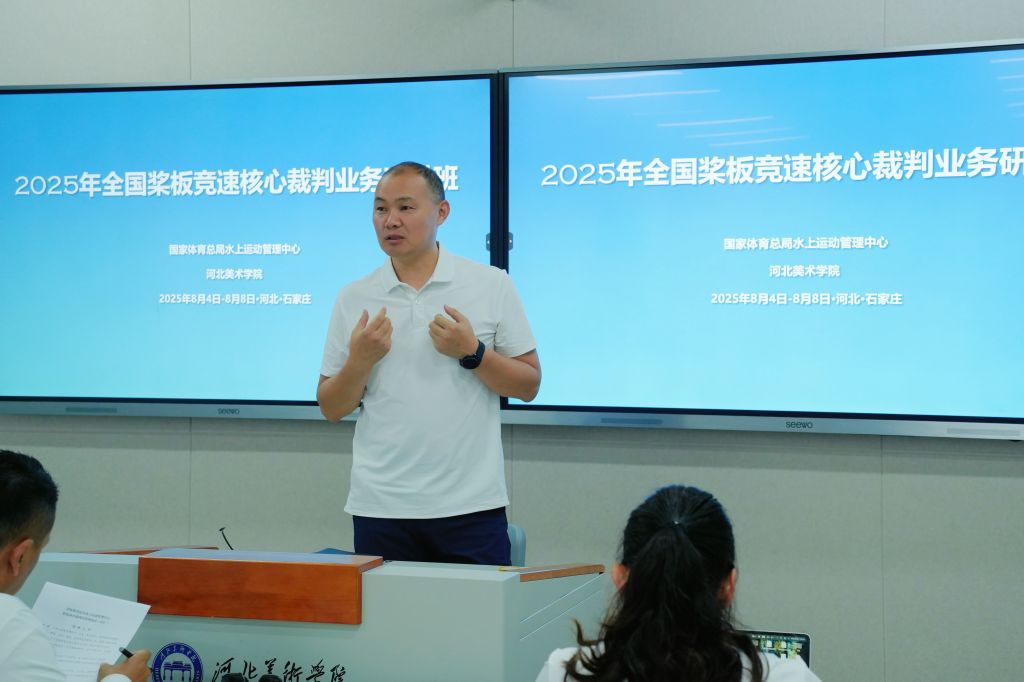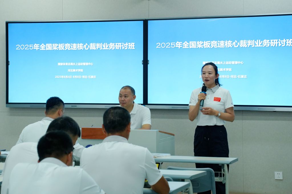 来自全国的桨板竞速项目核心裁判员、技术官员及赛事组织者齐聚一堂,通过理论学习、案例研讨等形式,深入交流桨板竞速裁判业务规范与赛事组织经验,为推动我国桨板运动专业化、标准化发展注入新动能。