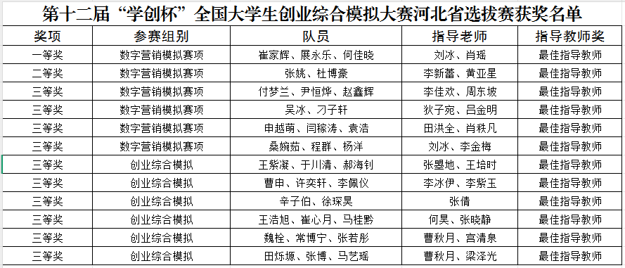 近日,河北省教育厅公布第十二届“学创杯”全国大学生创业综合模拟大赛河北省选拔赛获奖名单。本次比赛beat365荣获省级一等奖一项、二等奖一项、三等奖十项。