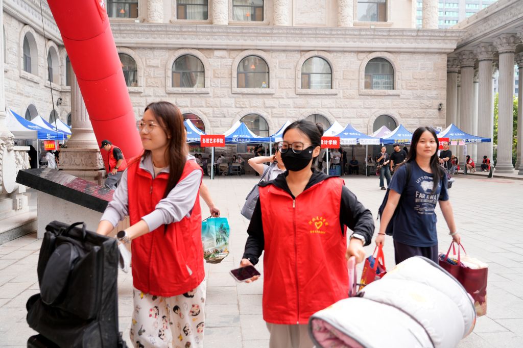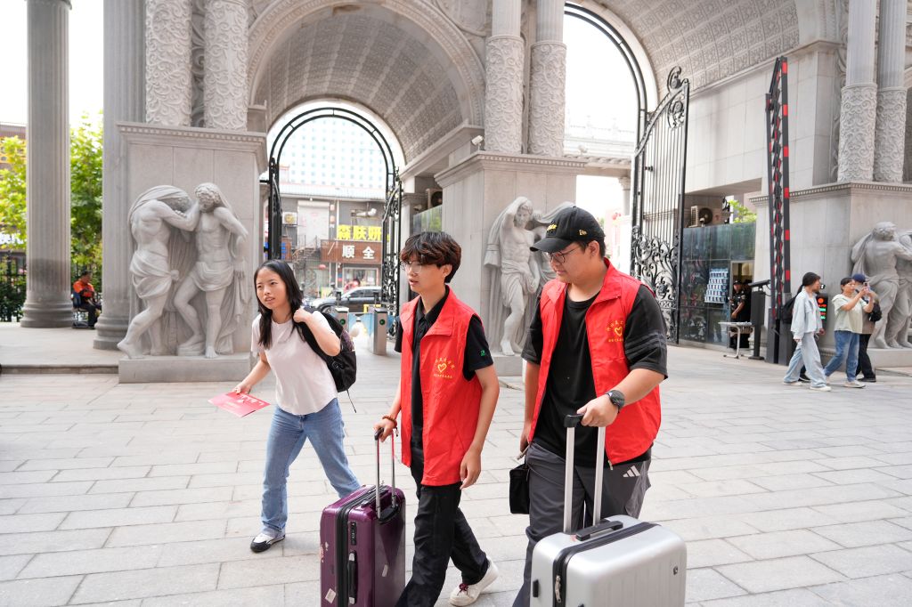 从车站到校门,从入校引导、手续办理到宿舍安置,迎新志愿者一路接力。一句“跟我来”驱散了陌生,一句“我帮你”消弭了距离。凌晨的微光里,他们奔忙的身影成为新生踏进大学校园的第一份安心。