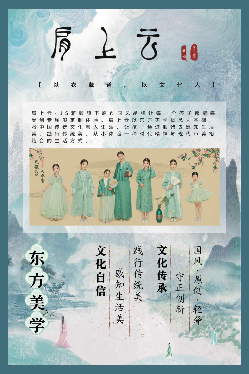 肩上云品牌本季设计灵感深植于中国传统文化,以《诗经》为精神锚点构建“文化考据-设计转化”的创作路径。设计师蒋硕从《诗经·郑风·子衿》“青青子衿,悠悠我心”中提炼核心意象,将“青”色定义为东方哲学的视觉载体——既象征草木初生的生机活力,又暗合传统文化中“典雅含蓄”的审美追求。她在采访中强调:“中国悠久的历史为现代设计提供了丰富的素材,我们要做的不是复刻古董,而是让传统美学在当代生活中重新呼吸。”