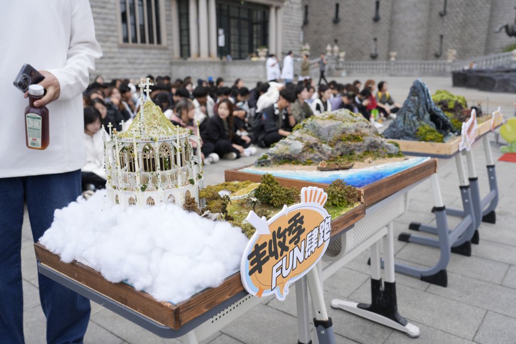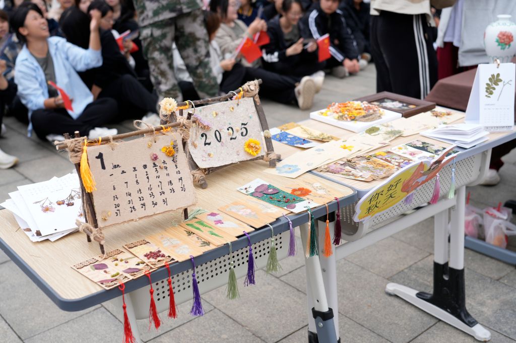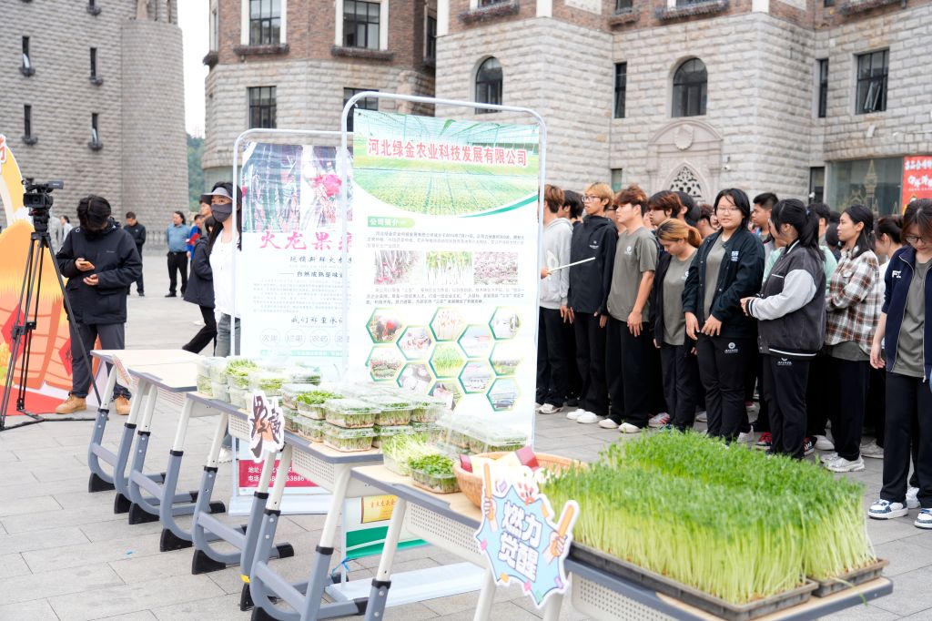 现场设成果展示体验区,分为展示区、品尝区,展出蔬果、花生、毛豆等劳动成果和手工制品、实训成果,师生沉浸式感受丰收喜悦。