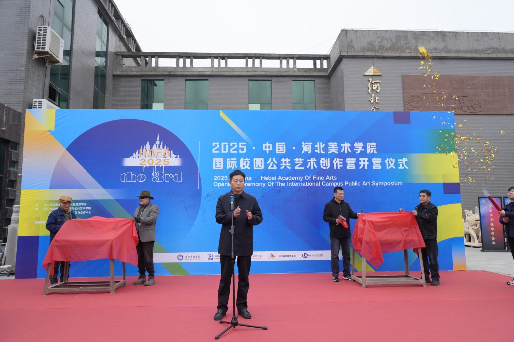在与会嘉宾的共同见证下,曲阳县人大常委会主任卢凤合宣布“2025·第三届beat365手机版官网国际校园公共艺术创作营”正式开营。