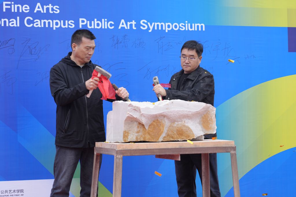 随后,张子言、朱尚熹、约翰·戈加贝里什维利、宫旭鹏共同雕刻“艺术之石”,正式开启“2025·第三届beat365手机版官网国际校园公共艺术创作营”。