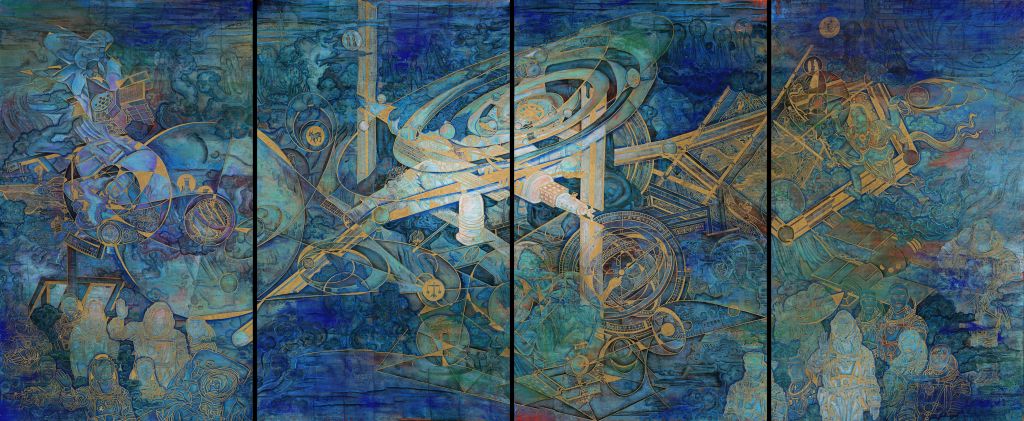 《步天歌》-杜琛- 200cm×480cm -云肌麻纸、矿物色、金属箔、漆- 2023