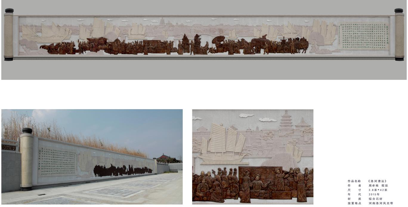 《洛河漕运》-周卓栋 程辰- 4200cm×380cm -综合石材- 2015