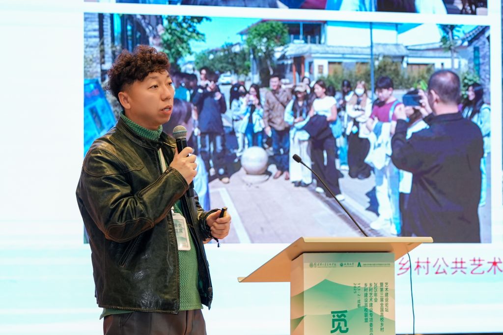 论坛上,雕塑与公共艺术学院院长甄亚雷发表主旨演讲,系统回顾了学校近年来在艺术介入乡村中的探索与成果,重点介绍了《乡村公共艺术实践》课程深入乡村的系列项目、乡村驻地创作计划及学校服务地方文化振兴的创新路径。他表示,学校在艺术助力乡村振兴的探索中,通过课程、竞赛等不同方式,积极引导师生走进田野、融入社区,在乡村公共空间中实现融合共建,以美育助力乡村文化的可持续发展。