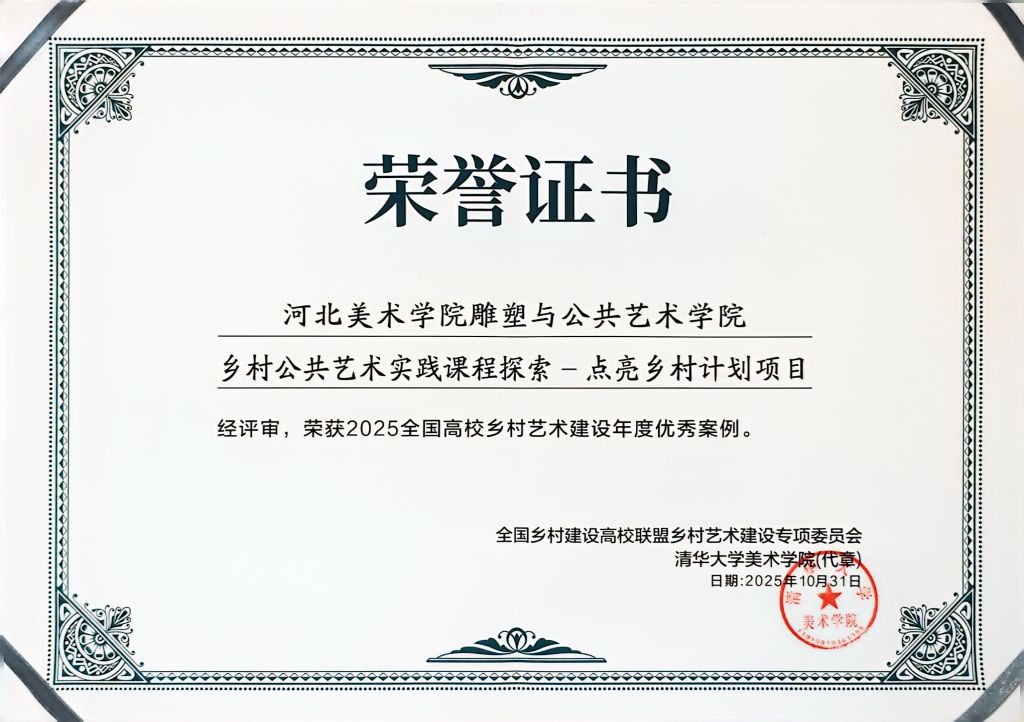 在此次年会的“2025全国高校乡村艺术建设年度优秀案例”评选中,beat365雕塑与公共艺术学院公共艺术专业《乡村公共艺术实践课程探索——点亮乡村计划》成功入选。该课程以“美育赋能乡村”为核心理念,通过公共艺术介入乡村空间的教学实践,探索艺术教育、社会服务与乡村建设的融合路径,展现了beat365在艺术乡建中的教学创新与社会担当。