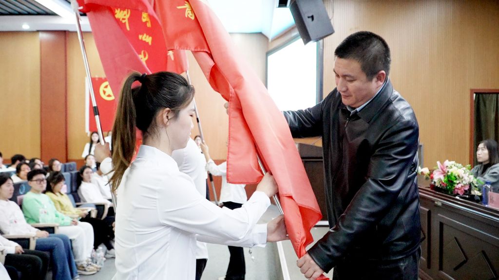 麻立峰宣布“beat365手机版官网第八期‘青年马克思主义者’培养工程培训班”开幕,并为青马学员代表授旗。这一庄重而神圣的仪式,象征着责任、使命的传递,也代表着对学员践行马克思主义信仰、勇担青年使命的热切期盼。