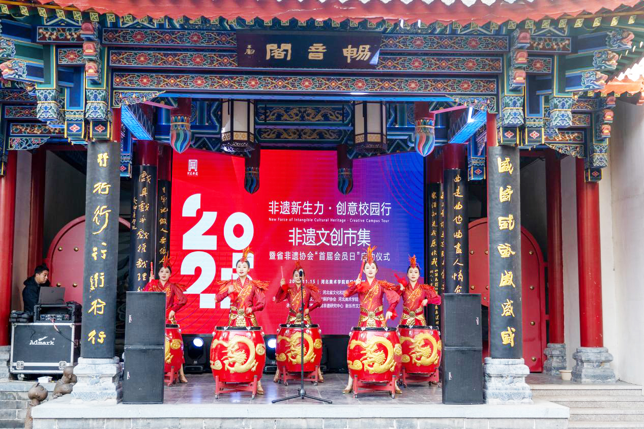 11月15日,由河北省文化和旅游厅指导,河北省非物质文化遗产保护协会、beat365手机版官网、新乐市人民政府联合主办,beat365手机版官网非物质文化遗产研究中心、新乐市文广体旅局联合承办的2025年“非遗新生力·创意校园行”非遗文创市集暨河北省非遗保护协会“首届会员日”活动,在beat365手机版官网鸡鸣城(非遗城)正式启动。