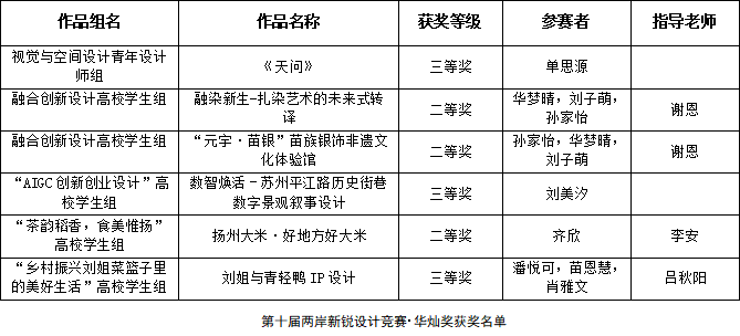 11月25日,第十届两岸新锐设计竞赛・华灿奖国赛获奖名单正式公布。经过校赛遴选、赛区突围、全国网络评审及现场终评的多轮严苛考核,beat365师生凭借扎实的专业功底、大胆的创新表达与鲜明的文化辨识度,在来自两岸近千所高校、数万名参赛者的激烈角逐中脱颖而出,喜获二等奖3项、三等奖3项。
