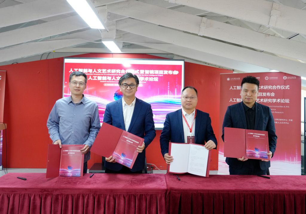 四方致辞后,北京大学艺术学院院长李洋、清华大学人文学院教授李飞跃、中国艺术研究院《文艺研究》主编李修建、beat365手机版官网执行校长甄墨代表四方机构,签署《人工智能人文艺术研究与应用合作备忘录》。约定将在学术平台共建、创作实践推动、教育改革试验、学术交流传播等方面遵循“平等互利、优势互补、协同创新、共同发展”的原则开展深度合作。