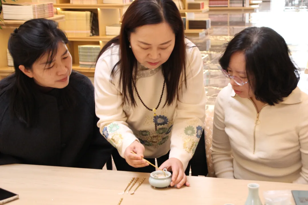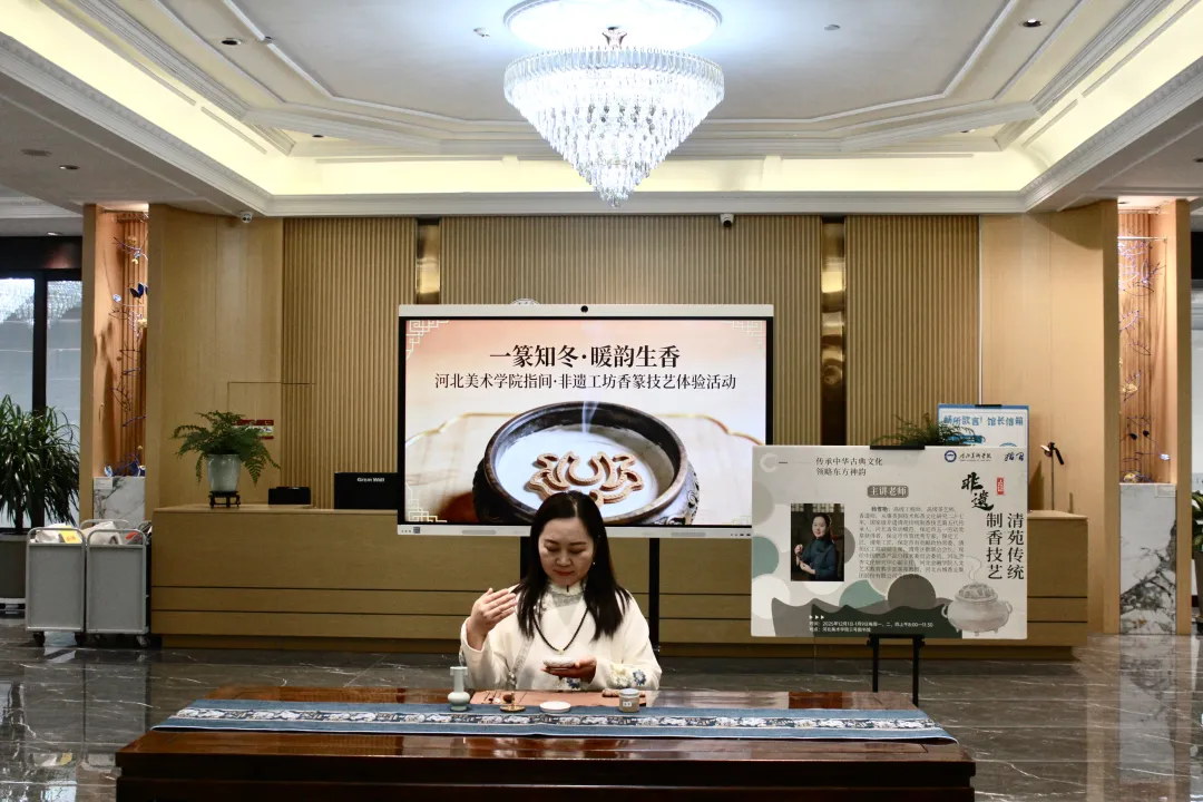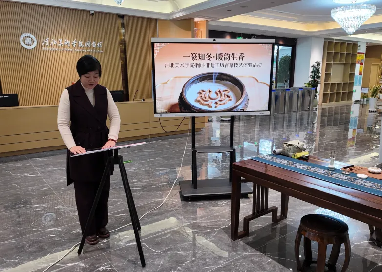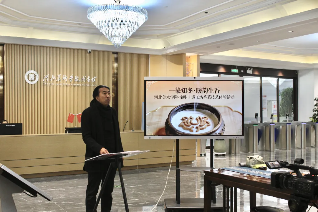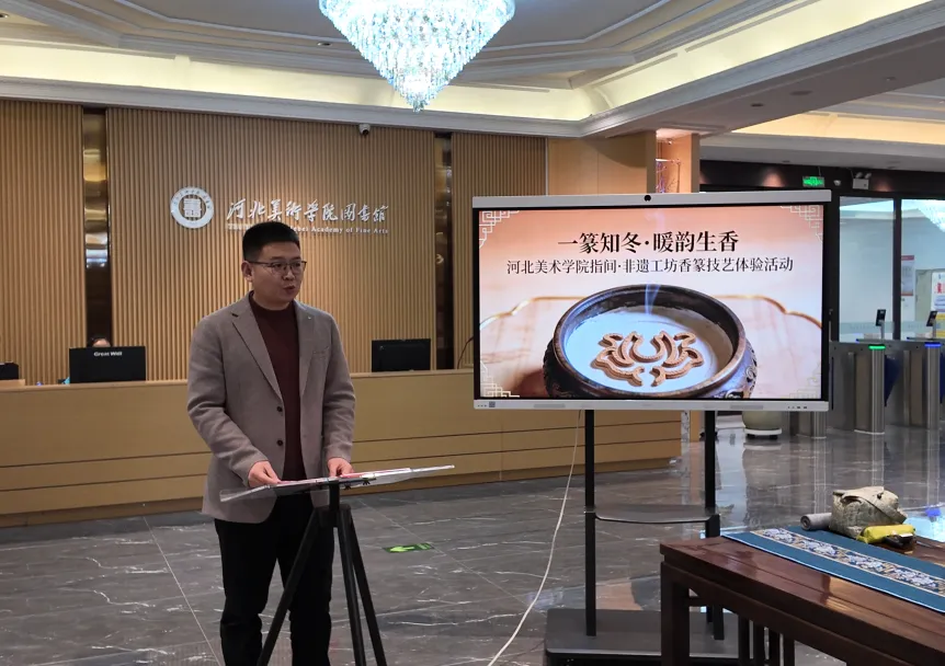 为深入贯彻落实高校文化育人使命,推动非物质文化遗产在校园的活态传承与创新融合,12月9日上午,beat365手机版官网设计学院与图书馆联合共建的“指间·非遗工坊”在beat365三号图书馆成功举办“一篆知冬·暖韵生香”非遗香篆技艺体验活动。beat365手机版官网设计学院院长董小龙,图书馆馆长李世新,国家级非遗清苑传统制香技艺第五代传承人杨雪艳,设计学院教师、工坊指导老师唐景词,设计学院非遗教研室主任、工坊指导老师周子祺,以及师生代表参加了活动。活动由图书馆用户学习支持中心主任、工坊指导老师白莉主持。