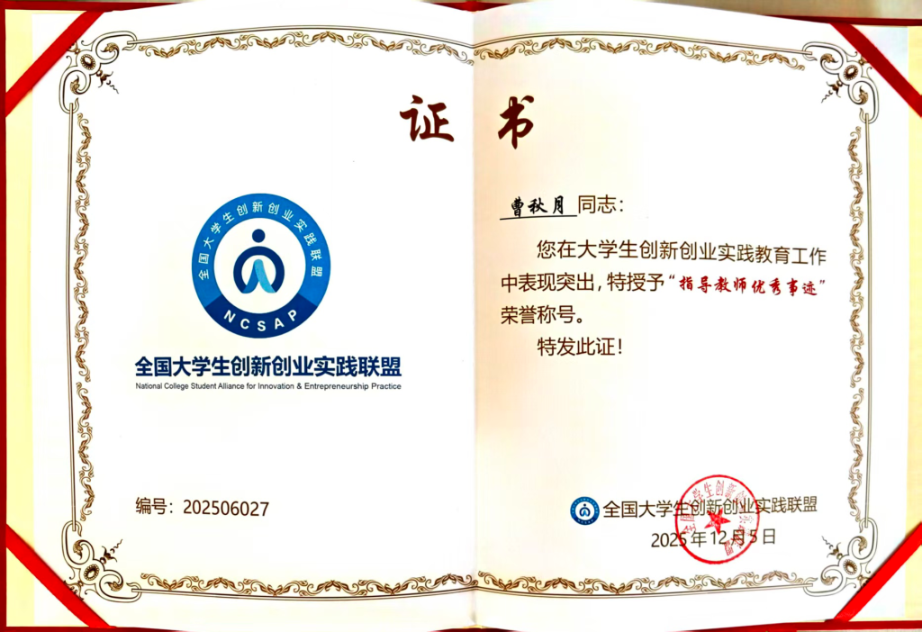 此次获奖不仅是对beat365创新创业教育成果的肯定,也为下一阶段深化“人工智能+双创”教育融合、推动教学体系创新提供了重要动力。未来,学校将进一步推动人工智能与创新创业教育深度融合,坚持以赛促教、以赛促学、以赛促研,系统构建“教学—实践—竞赛—转化—反馈”育人闭环,不断提升学生的创新精神与实践能力,为学校高质量发展贡献更大力量。