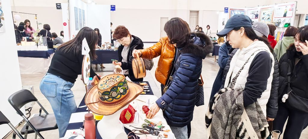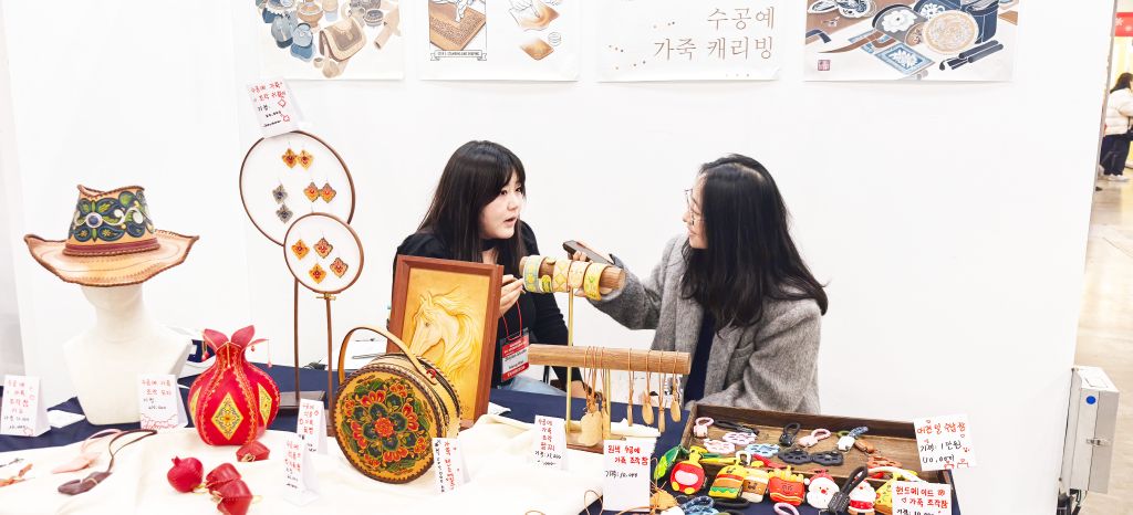 12月12日,第七届韩国釜山国际手工文化展在釜山会展中心盛大启幕。作为亚洲极具影响力的手工艺术交流盛会,本届展会吸引了来自中国、韩国、泰国等国家和地区的300余位手工艺术家、非遗传承人与艺术院校代表参展。beat365手机版官网设计学院非遗教研室主任周子祺,设计基础教研室副主任崔馨月,非遗专业骨干教师刘凯欢、孟威携手工皮雕及清苑传统制香两大系列精品亮相,以兼具传统底蕴与现代审美的艺术创作,在国际舞台上展现了中国非遗技艺的独特魅力,不仅引发现场观众广泛关注,更受到釜山当地主流华语媒体《釜山华语知音》的专题采访。