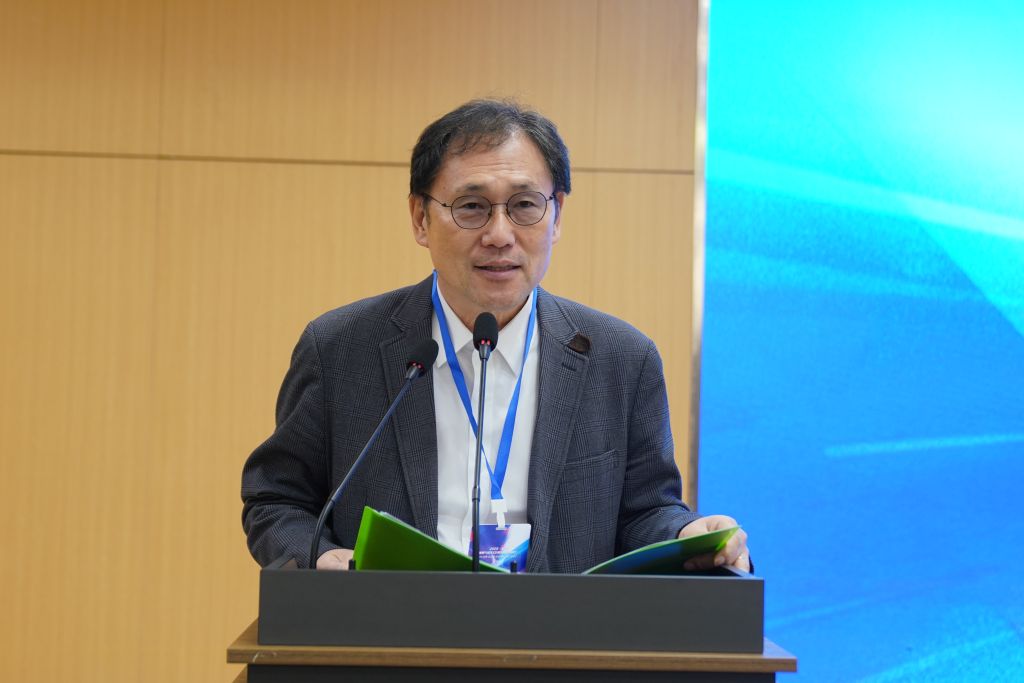韩国诚信女子大学校长李成根致辞。他指出,雕塑与公共艺术正日益融入社会生活,成为公共空间中重要的文化表达方式。通过跨文化交流推动艺术语言的发展,是当前中韩艺术界共同关注的重要课题。本次研讨会为两国艺术交流与合作搭建了新的平台,也为今后在师生交流与学术研究方面的持续合作奠定了基础。