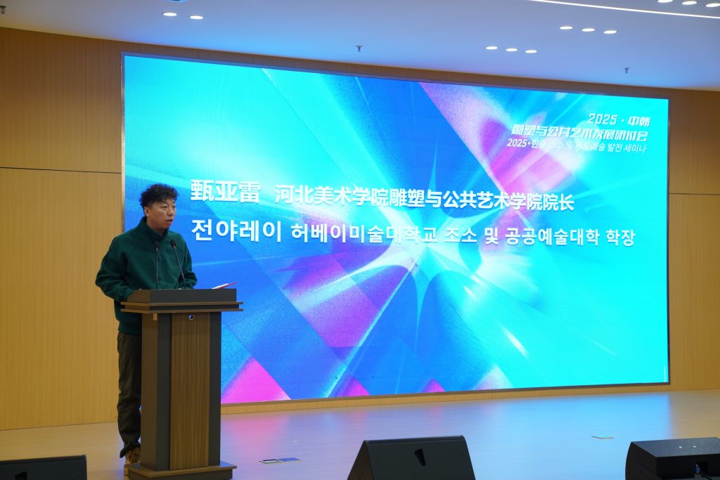 雕塑与公共艺术学院院长甄亚雷在致辞中表示,在城市更新与技术媒介快速发展的背景下,本次研讨会通过中韩跨文化视角,围绕雕塑与公共艺术在公共空间中的新实践与新路径展开深入探讨,为今后的学术合作、艺术创作与人才培养奠定了坚实基础。