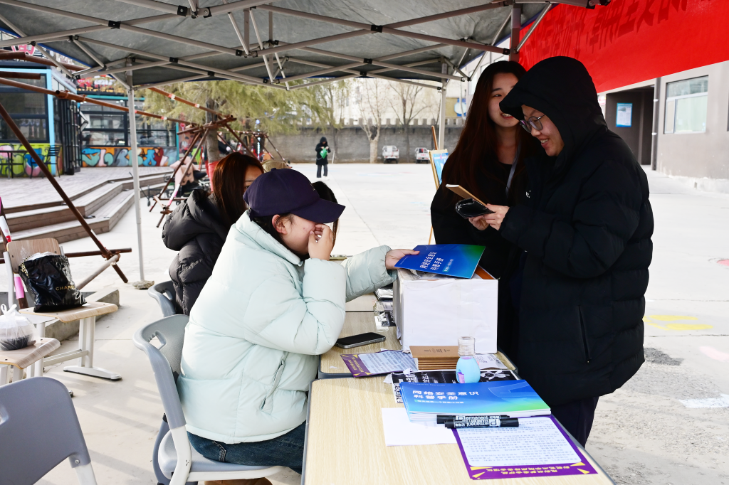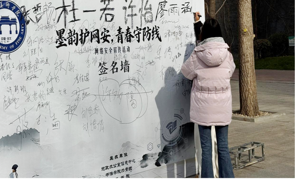 敦行书院“墨韵护网安,青春守防线”活动现场精心设置网络安全知识展板、签名承诺区及趣味互动区。工作人员发放《校园防诈安全宣传手册》,详细讲解电信诈骗、信息泄露等常见网络安全风险的防范要点。趣味互动区吸引了大量师生参与,大家在轻松的游戏氛围中学习网络安全知识,进一步加深了对网络安全重要性的认识。