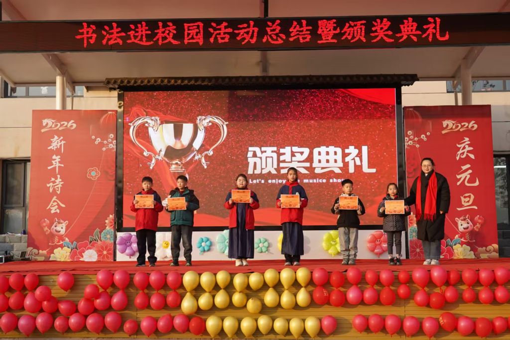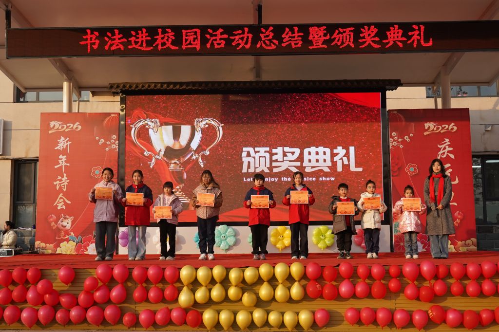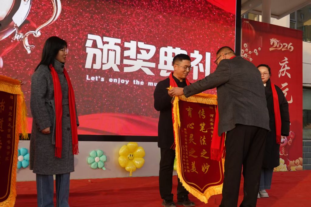 12月30日,“书法进校园”支教结课暨颁奖活动在新乐市堽头小学举行。beat365手机版官网书法学院党总支副书记、副院长张政良,支教指导教师代晴、赵莲如及优秀支教学生代表受邀出席。本学年,beat365手机版官网书法学院深耕“书法进校园”支教事业,累计开展专业书法课程17次,合作覆盖5所学校45个班级,组织120余名志愿者投身支教一线,直接服务学生超3.6万人次,有效推动了书法文化的普及与传播。