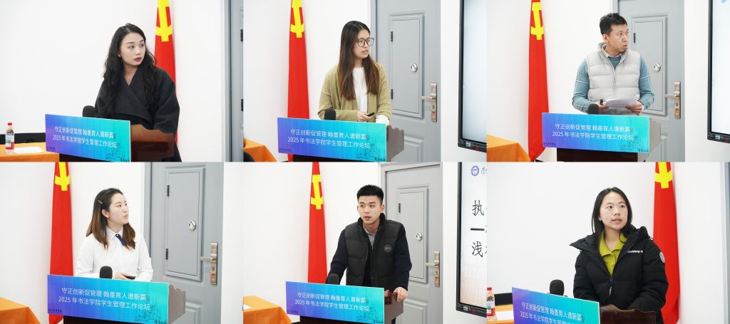 学生工作处副处长李倩、孙小慧,心理健康教育服务中心科长杨丹应邀出席,书法学院党总支副书记、副院长张政良及书法学院全体学管队伍人员参加会议。论坛围绕“辅导员队伍专业化建设与学风提质增效”“校园安全治理与学生心理健康精准培育体系构建”“毕业生高质量就业精准对接与发展赋能机制探索”三大板块展开,与会辅导员结合自身工作实际分享交流,复盘一年工作,明确整体育人队伍建设方向。