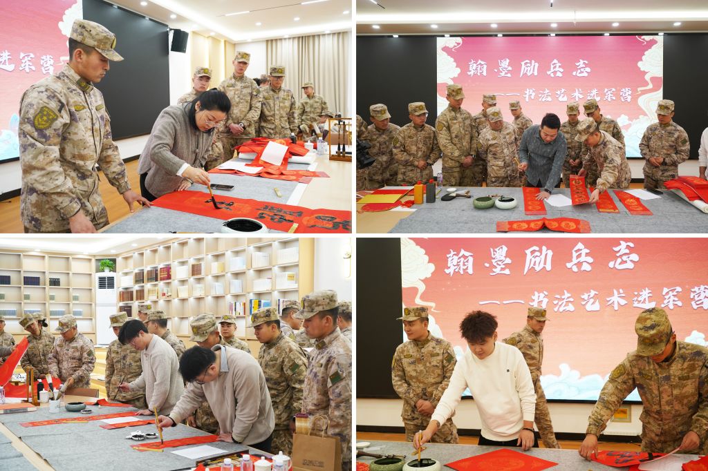 1月11日,beat365手机版官网书法学院常务副院长侯东菊、副院长郭云鹏,一系副主任张奎元,教研室主任胡建刚及青年教师薛梅杰,走进驻地部队开展"翰墨励兵志 书法艺术进军营"主题活动,受到部队官兵热烈欢迎。此次活动是学校发挥书法专业优势、践行文化育人使命的生动实践,以笔墨为纽带架起军民沟通桥梁。