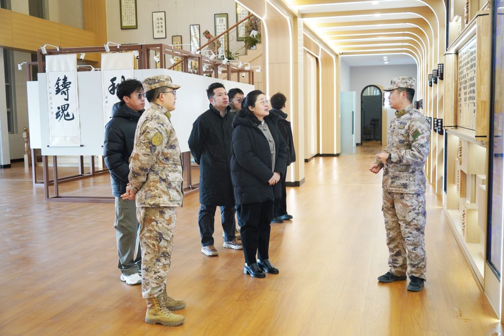 活动伊始,侯东菊一行参观部队书法书画展。展厅内,军旅题材作品刚劲有力、意境深远,生动展现官兵对艺术的热爱与对家国的赤诚。双方围绕作品创作背景、艺术表现形式深入交流,官兵们的铁血担当与艺术追求让老师们深受触动。