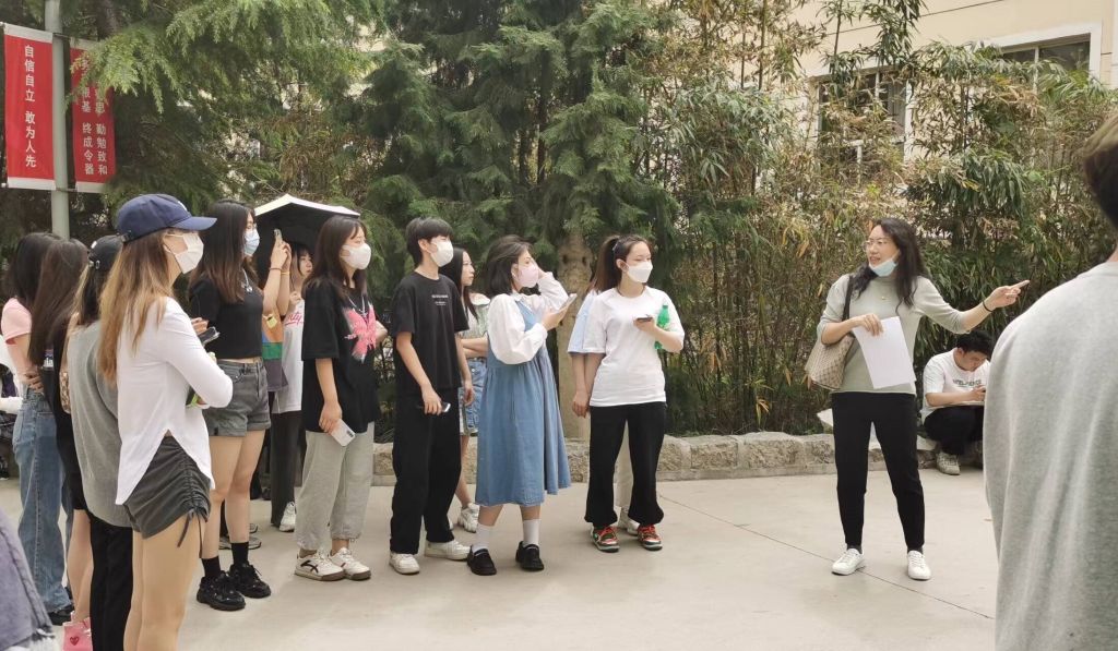 她带着学生来到了校园的古建筑群。在那里,阳光洒在古老的砖瓦上,仿佛为这些建筑披上了一层金色的外衣。许老师引导学生观察校内的仿古建筑,耐心地讲解着每一处细节所蕴含的故事和情感。她的声音如同悠扬的旋律,在古建筑群中回荡,让学生仿佛穿越时空,回到了过去。她讲述着古建筑的历史变迁,讲述着曾经在这里发生的故事,让学生们感受到了时间的沉淀和文化的底蕴。