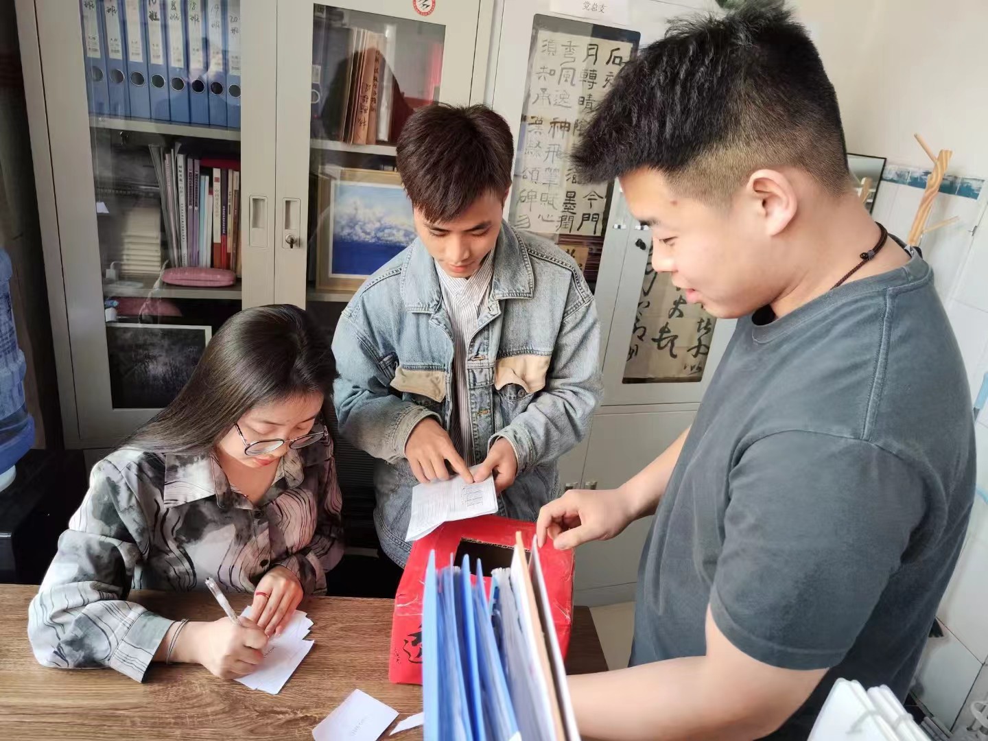 王同学初到学校时,需要提交党员材料,面对陌生的环境显得有些手忙脚乱,他把各种资料堆放在桌上,厚厚一沓几乎遮住了王老师的视线,王老师抬头,恰好对上他局促的眼神。了解情况后,王老师拍拍他的肩膀说道:“你不用担心,这些材料我帮你梳理清楚,以后有什么不懂的事也可以来问我。”在几天的接触中,她深感这件事情的复杂,即便这样,也仍旧耐心地帮助这名只有几面之缘的学生,不厌其烦地沟通需要完善的材料。令人欣慰的是,王同学所属的学校提交的党员资料都很齐全,他也顺利的开启了新阶段的学习。