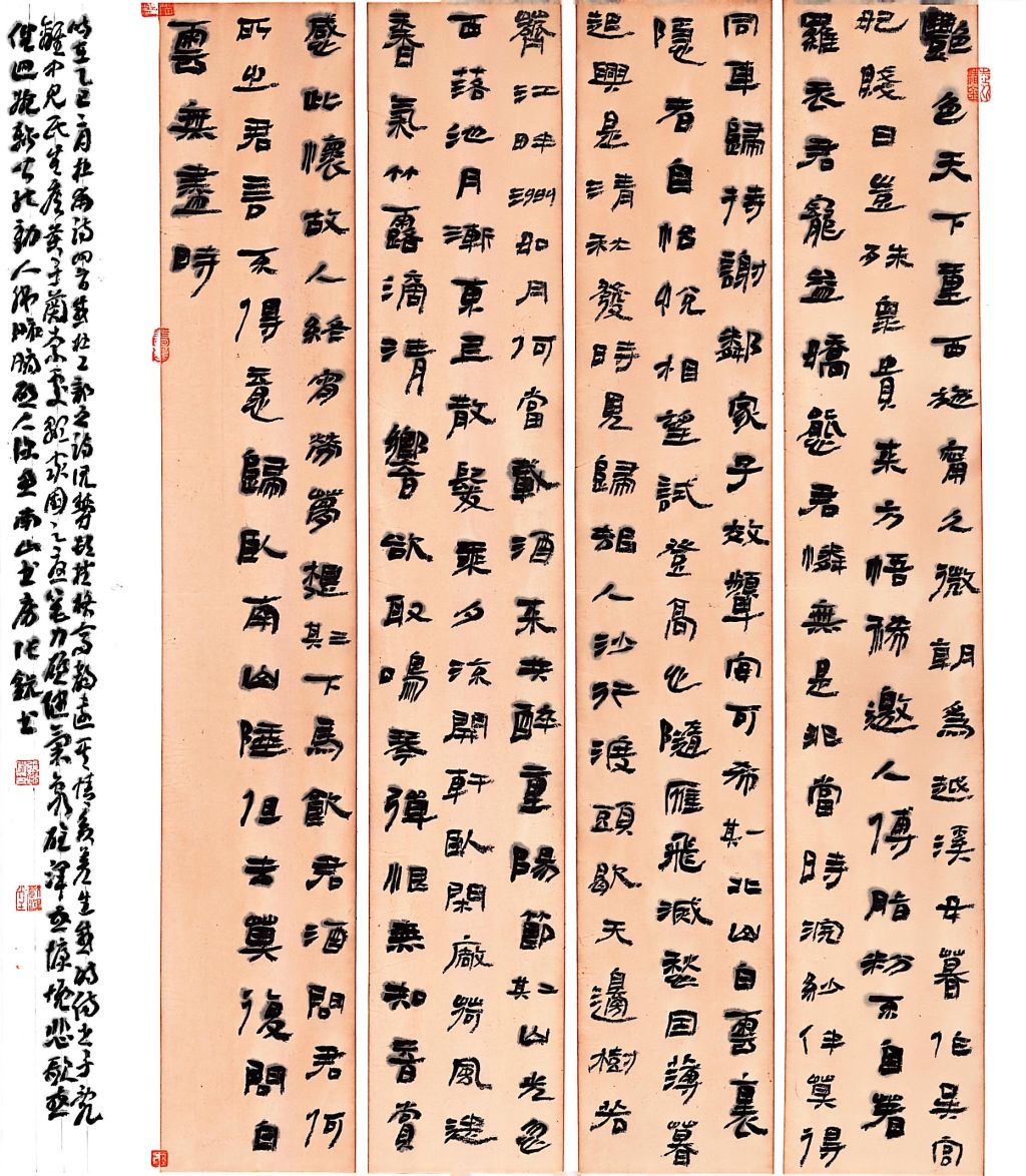 随着学习与实践的不断深入,张锐的书法技艺实现了质的飞跃。他将汉碑的古朴厚重、简牍的灵动自然以及行草书的章法和墨色对比有机融合,以行草的理念书写汉碑,逐渐形成了独特的个人风格。这种风格源于他对不同书体的热爱与深入钻研,经过反复尝试和众多赛事的验证得以确立。在第五届吉林省书法双年展、江西省第十一届润德奖全国书法大赛等赛事中,他凭借这一独特风格屡获佳绩。