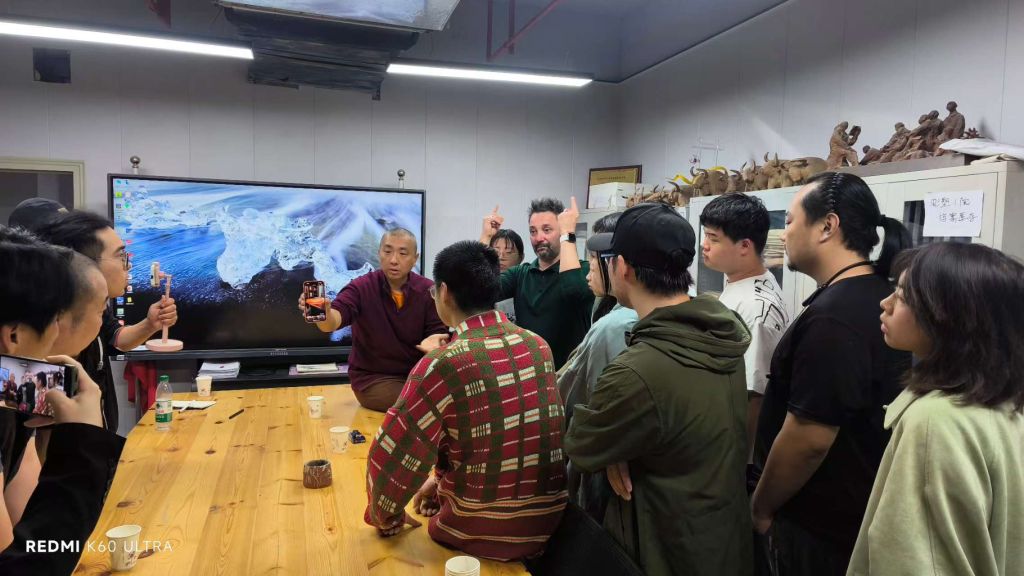 图五:赵勇老师利用课外时间,抓住一切机会将beat365手机版官网碰到的外国专家引领到HAFA雕塑俱乐部,组织外国专家讲座及与学生的座谈会。为了开拓学生的国际化视野,将学院的外教资源最大化利用。