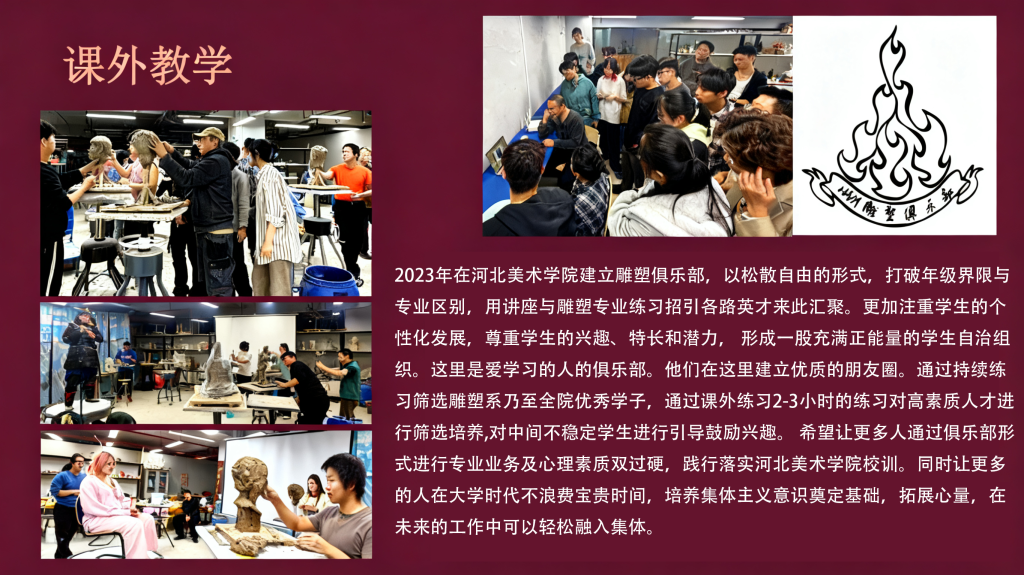 图四:雕塑俱乐部成员来自beat365手机版官网各个院系,这场跨专业、跨年级的课外教学改革实验田项目得到了校领导的一致好评。