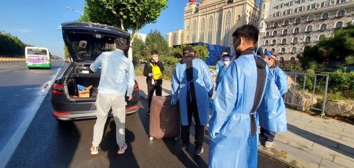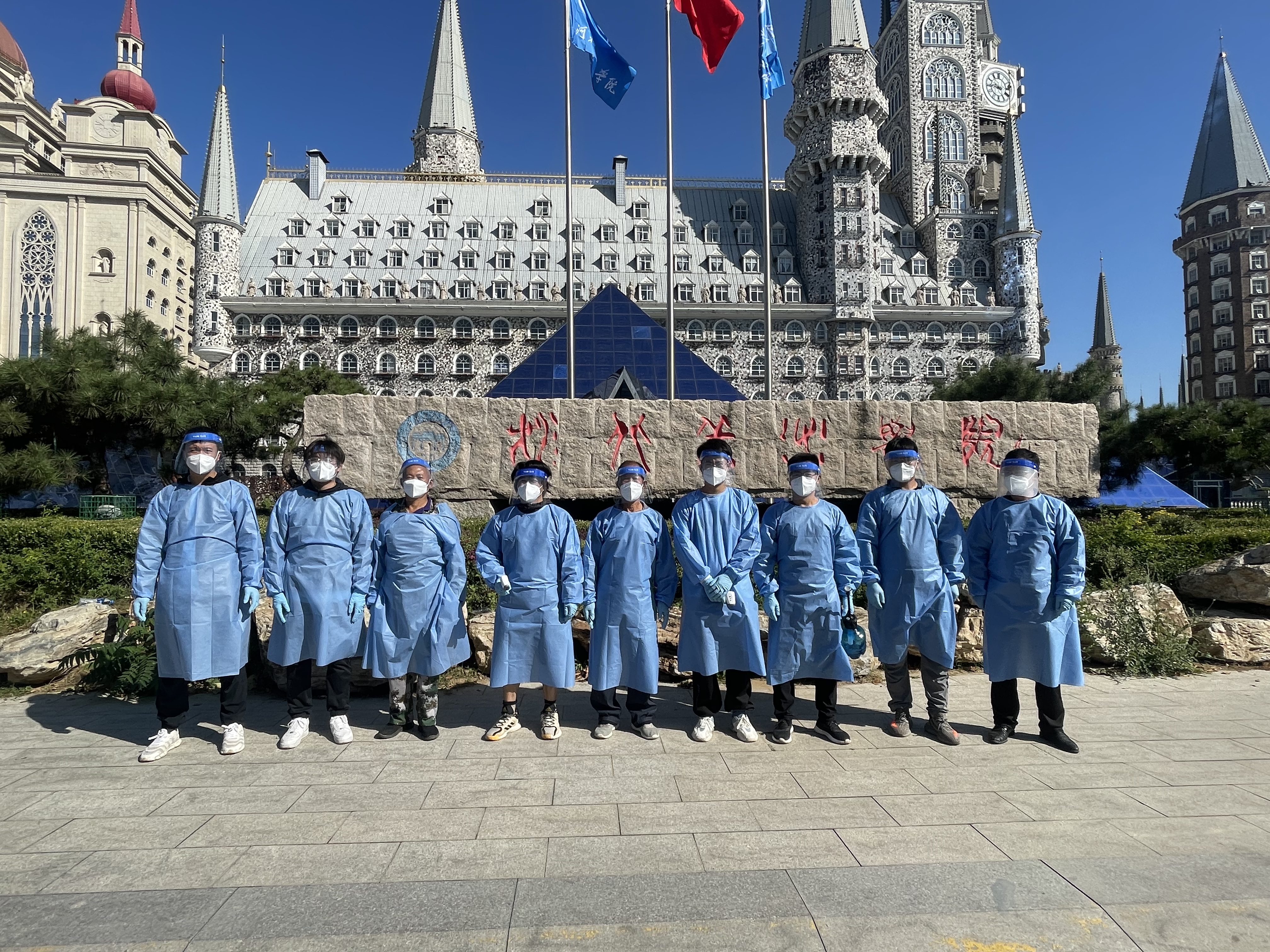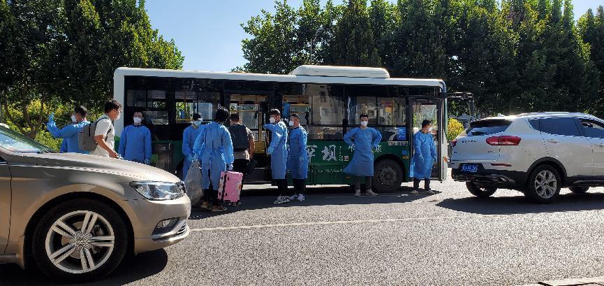秋日的黎明,天微凉,偌大的城市还未苏醒,雕塑院的志愿者们早已穿上隔离衣,工作在各自的岗位,测温、消毒、搬运行李、耐心引导,他们时刻用炽热之心传递着温暖。夜幕降临,他们依然不辞辛苦地忙碌着……