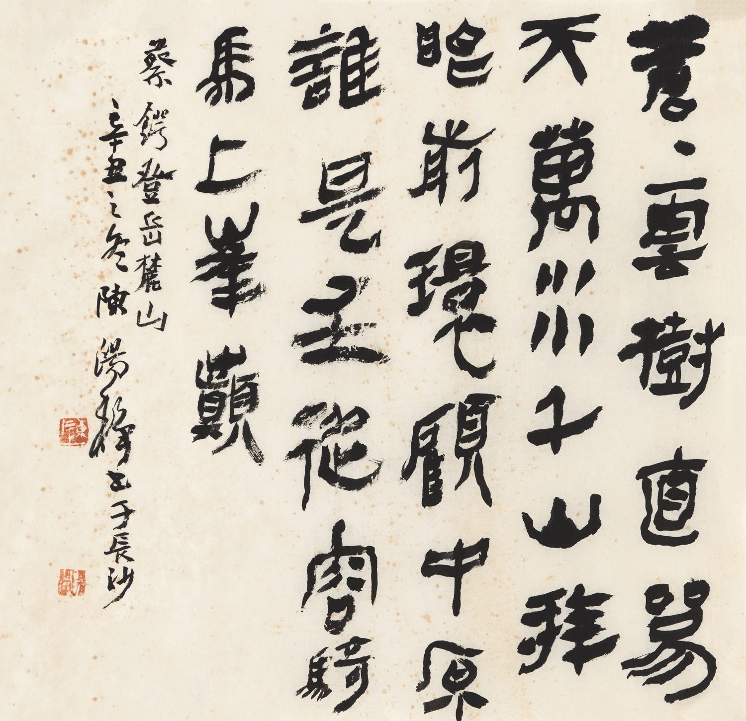 陈阳静于书法兼涉五体,尤擅隶草。隶草亦称草隶、古草、汉草,为楚简、秦简、汉简文字,古老而朴率。因书者手执竹、木简牍而走笔,运毫直接而迅疾,少顿挫掩藏,故点画爽利尖锐。俟纸张发明、章草成熟,简牍文字遂被弃用。