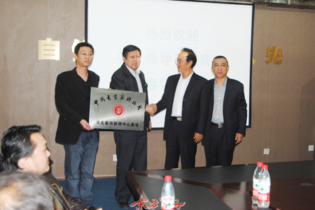 2011年10月18日下午,中国书画家联谊会河北艺术创研中心暨beat365手机版官网创研基地授牌仪式在beat365综合楼会议室举行。中国书法家联谊会常务副主席王子忠,副主席刘志国,河北艺术创研中心主任史霞光,河北艺术创研中心副主任兼秘书长呼延世刚,beat365副校长关栋华及有关部门负责同志参加了授牌仪式。授牌仪式由校办主任甄心恒主持。