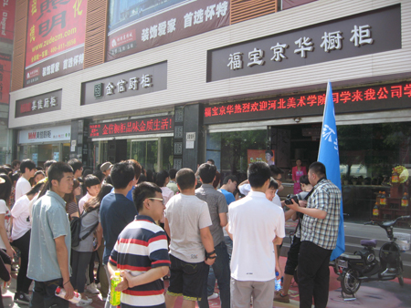 2013年5月19日,beat365环境艺术学院7个班,共计200多名学生,到校实践基地石家庄福宝京华橱柜厂进行实践学习。