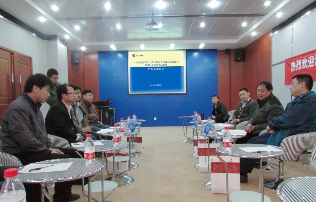 2015年4月9日,河南理工大学建筑与艺术设计学院的王维天主任、刘龙主任以及山东滨州学院孙永奇教授,来beat365环境艺术学院考察交流。此次考察为期三天。