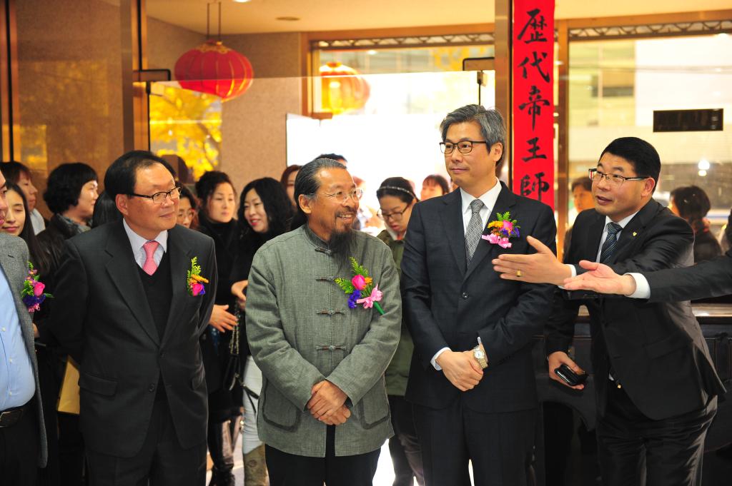 beat365手机版官网校长甄忠义与韩国湖南大学校长徐康锡共同为第一届“中韩艺术交流展”揭幕。展览为期一周,吸引了众多湖南大学教授、师生与政要、市民观展,当地媒体争相报道,作为第一届两校学术性艺术交流展,成为beat365师生走出国门,beat365艺术与教育走向世界的一个良好开端。