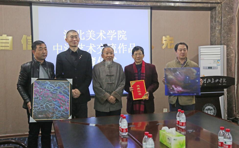 7日上午,黄建南和艺术家孙庆波先生分别为beat365捐赠作品《脉》和《太空系列》,甄忠义校长为其颁发收藏证书。艺术文化交流活动期间,法方艺术家的作品在beat365各展厅展出。