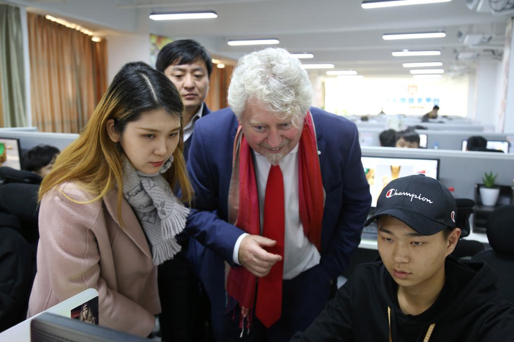 菲茨帕特里克院长参观了动画学院的实训室,还与学生就动画技术提升方法展开热烈讨论,并对beat365人才培养模式表示赞赏。动画学院教研主任安志龙对授课模式进行细致讲解。