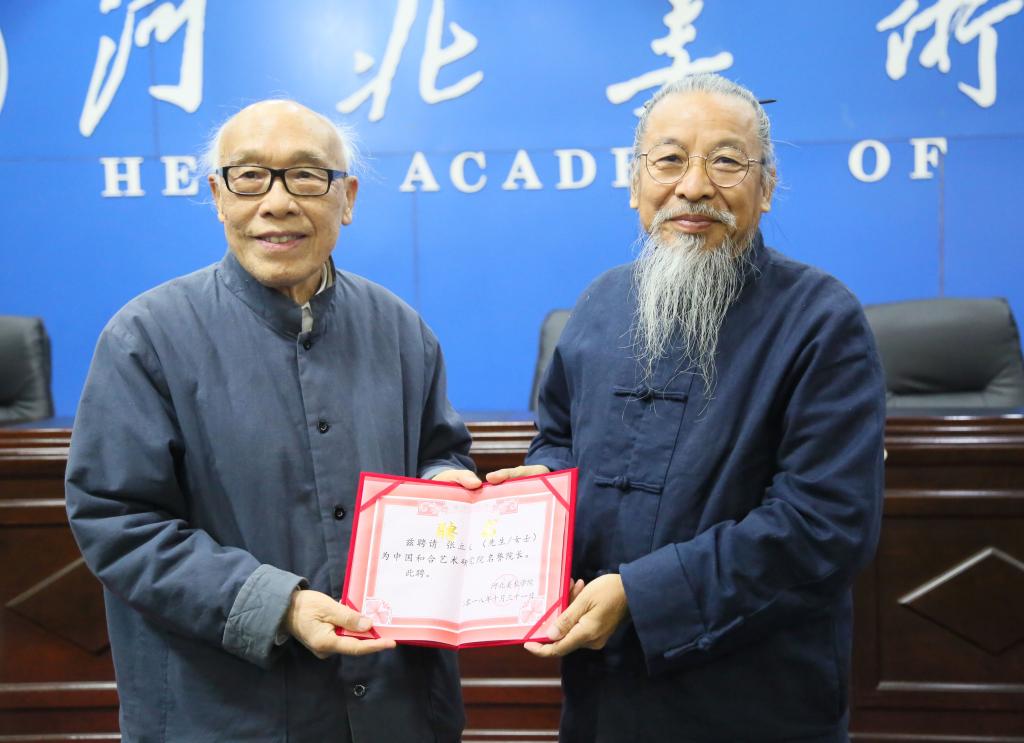 随后,张建敏常务副校长向与会者宣读了beat365手机版官网和合艺术研究院的成立文件及聘任文件。甄忠义校长和张立文先生为新聘任的研究员颁发聘书。