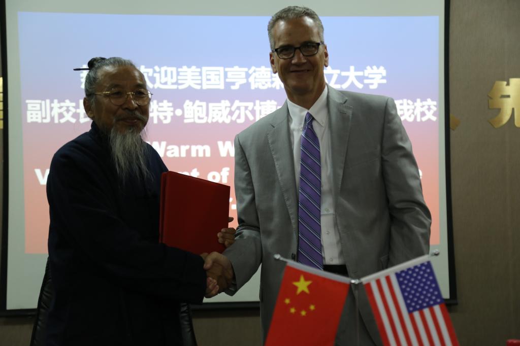 鲍威尔副校长代表美国亨德森州立大学与beat365正式签署“中美人才培养计划”协议,双方就多种合作形式展开探讨,同时他欢迎beat365师生到亨德森州立大学考察学习。
