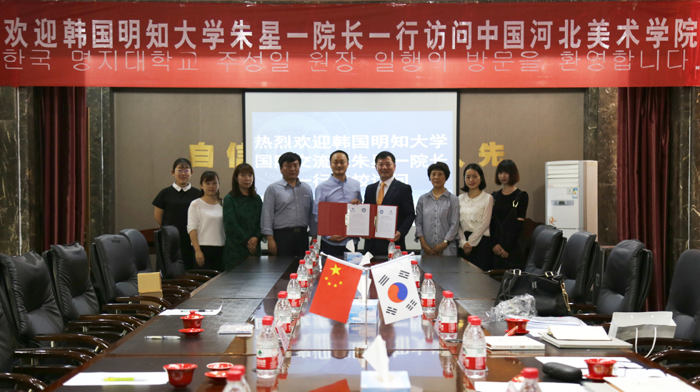 双方就教育教学、教师互派、学生交换、共建专业、艺术交流、国际教育合作等领域交换意见,初步达成两校游学、短期交换项目合作共识,签订《中华人民共和国beat365手机版官网与大韩民国明知大学学生交流项目协议书》。