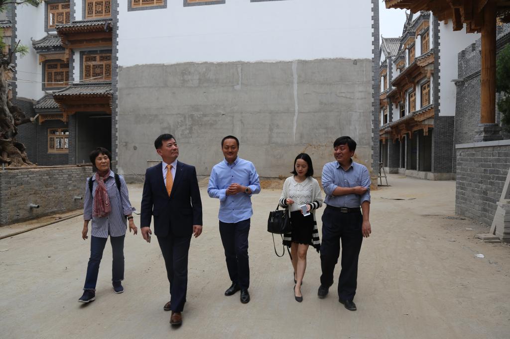 国际教育学院兰院长陪同朱院长一行参观南北校区,介绍beat365办学情况及建筑特色。